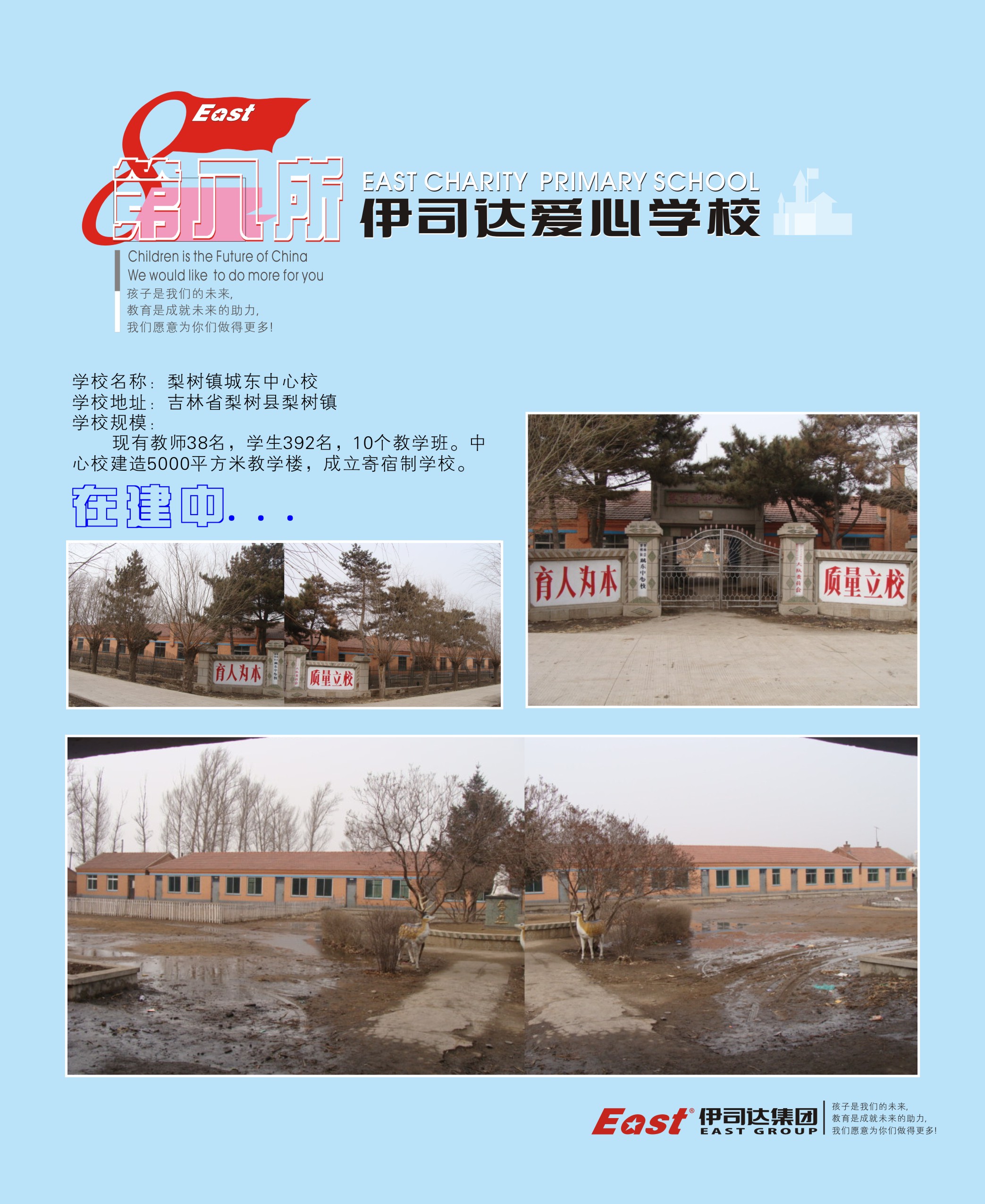 吉林梨樹縣梨樹鎮城東中心校,現有教師38名,學生392名,10個教學班,中心校建造5000平方米教學樓,成立寄宿制學校。