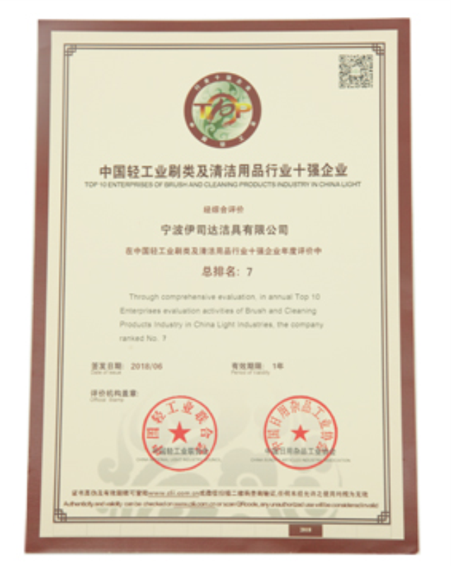 中国轻工业刷类及清洁用具行业十强企业