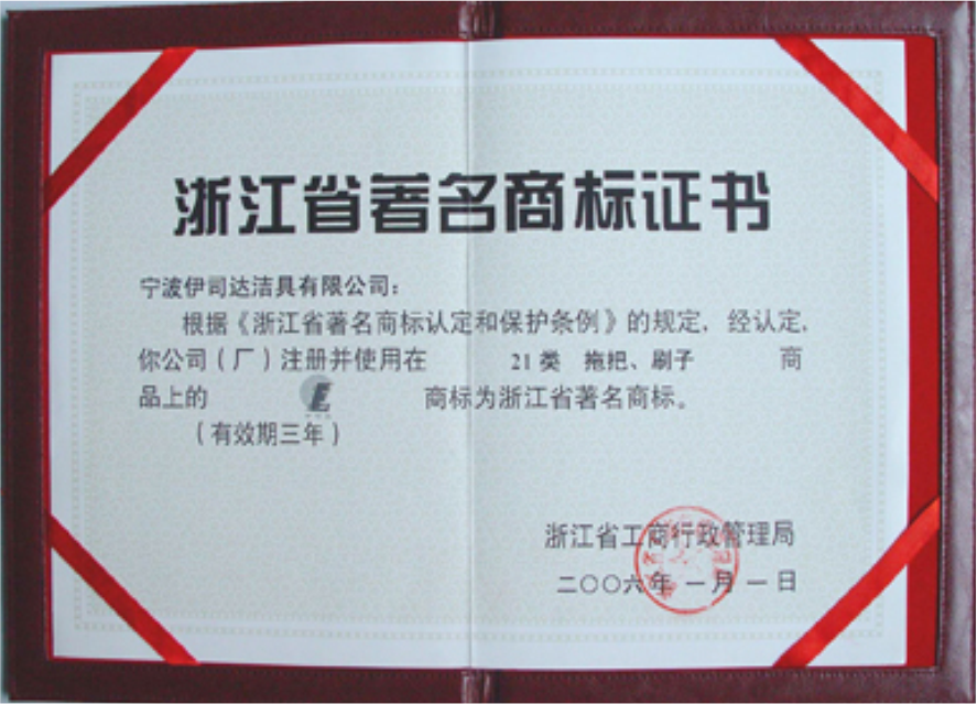 伊司達商標被評為浙江省著名商標