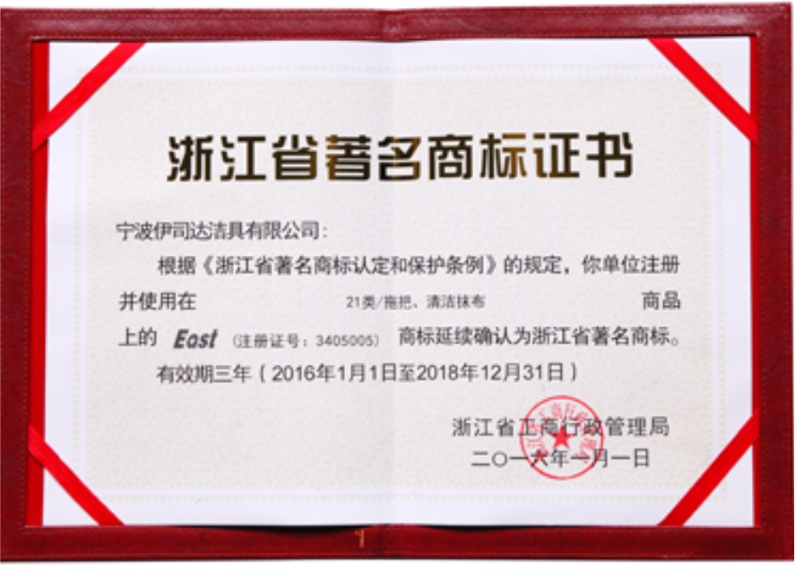 “EAST”商標認定為浙江省著名商標